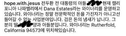 故 전두환의 손자가 전두환 일가에 대한 영상과 글을 본인의 인스타그램에 올려 폭로했다.